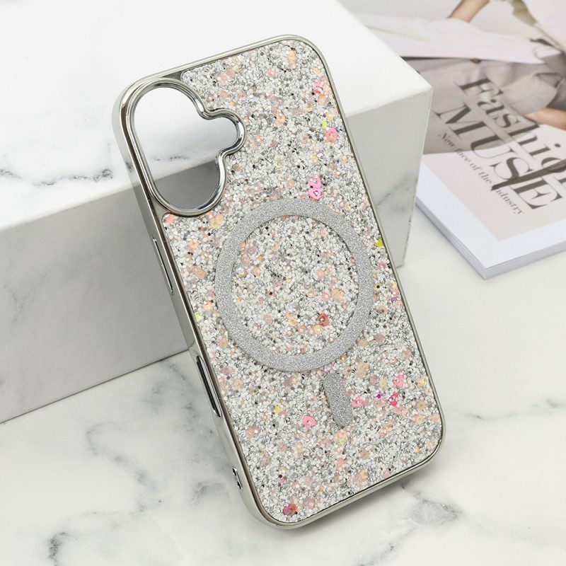 Futrola za iPhone 16 leđa Glam glow MagSafe - srebrna